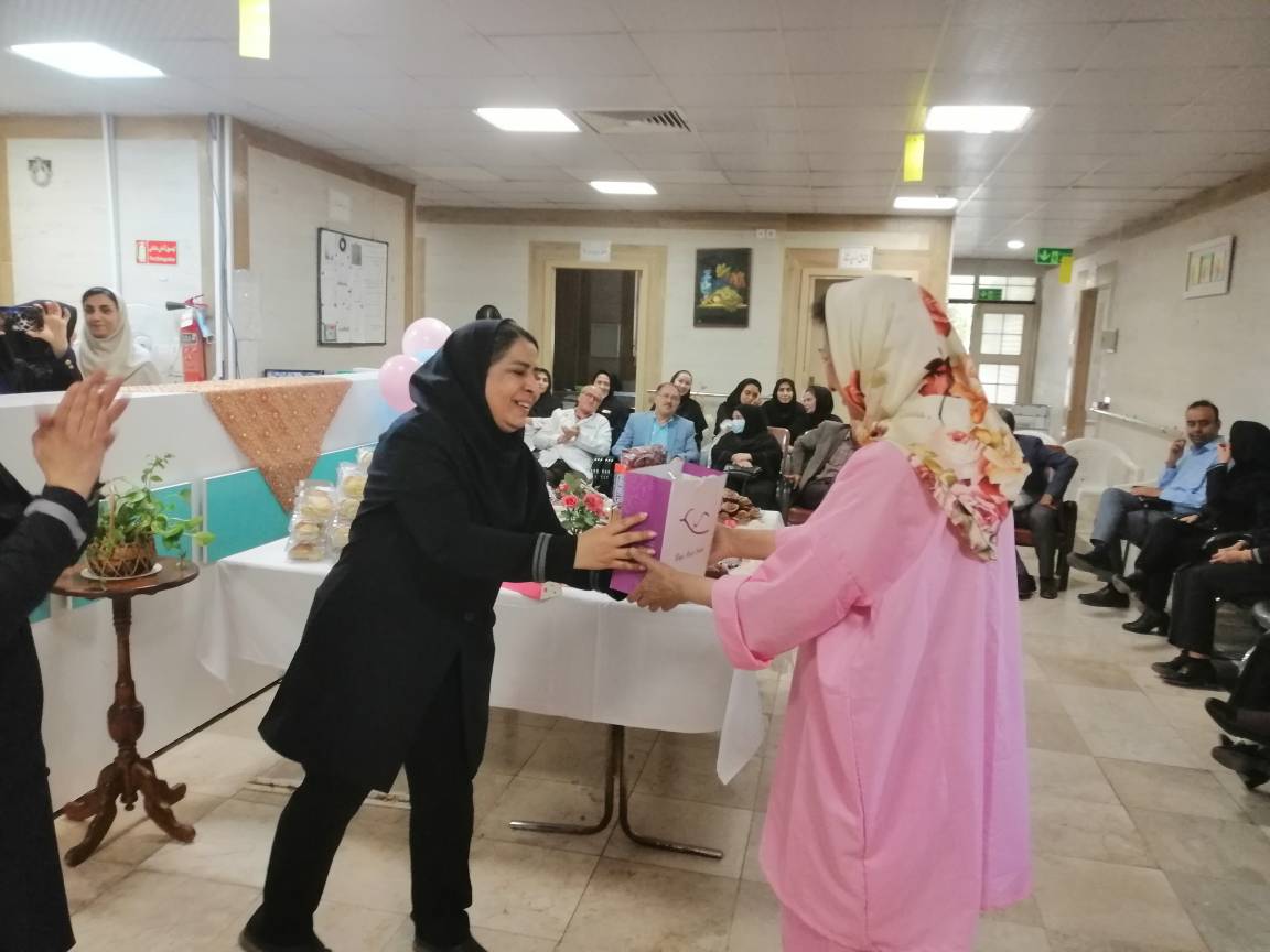 در این جشن، جناب آقای ارفع، خیر محترم، به پاس قدردانی از زحمات کارکنان و ارزش به بیماران، یک اسپیکر به بخش اهدا کردند. همچنین، همکاران محترم با اهدا هدایایی به بیمار روزانه بخش پروین خانم، از زحمات ایشان تقدیر کردند. به تمامی بیماران حاضر در جشن نیز هدایایی اهدا شد تا لحظاتی شاد را تجربه کنند.