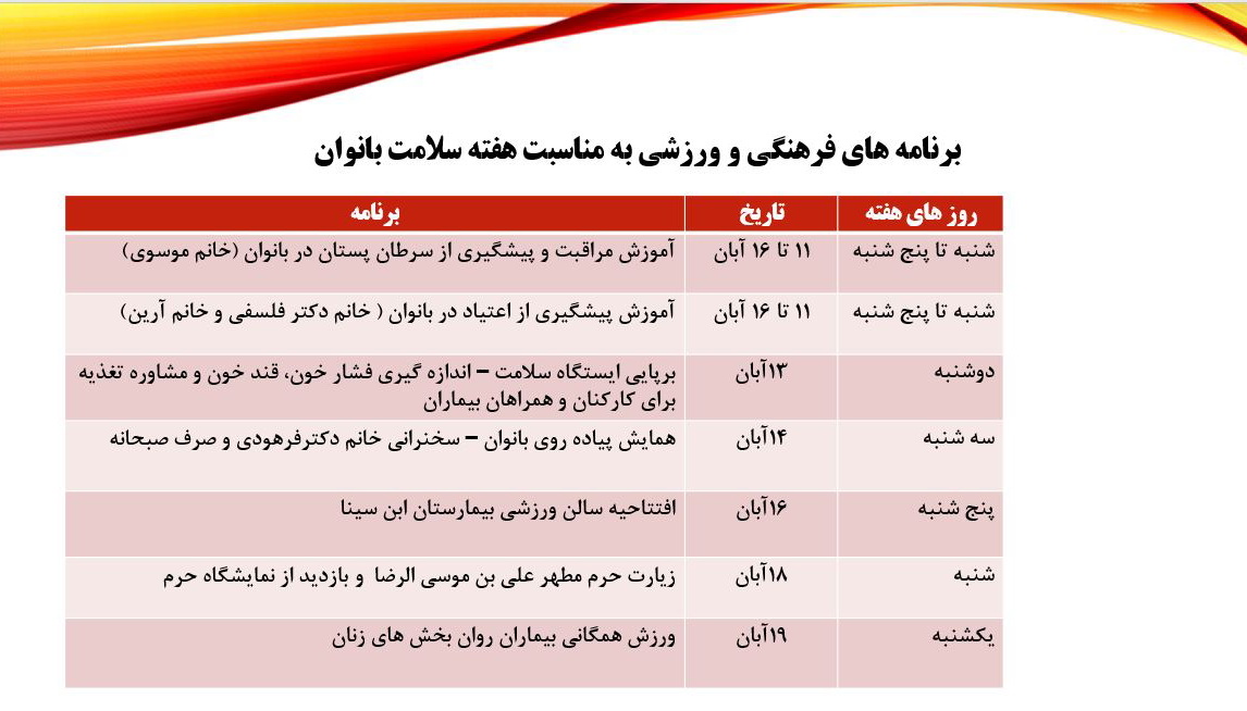 12 آبان 1398 19 آذر 1398 بازدید: 204 امتیاز: ( 0 Rating ) هفته سلامت بانوان ایران گرامی باد امتیاز کاربران لطفا رای دهید رای 1 رای 2 رای 3 رای 4 رای 5