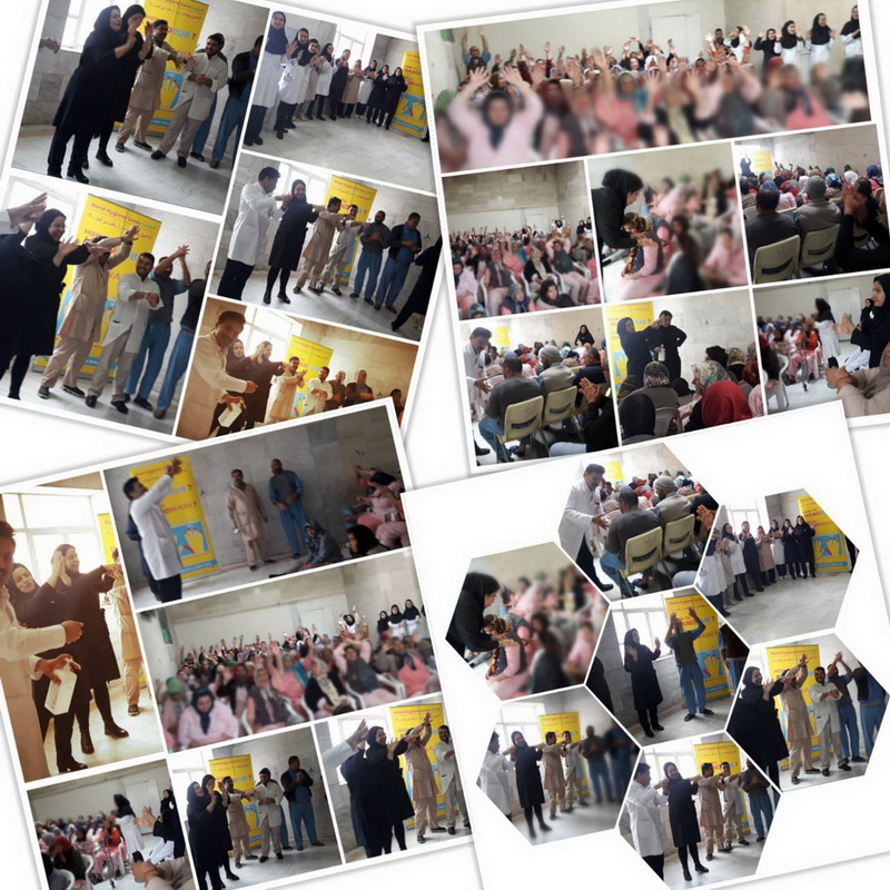 برگزاری برنامه آموزش بهداشت دست در بین بیماران اعصاب و روان بیمارستان دکتر حجازی توسط واحد کنترل عفونت بیمارستان و با همکاری پرسنل فداکار و مهربان بیمارستان دکتر حجازی به همراه برگزاری برنامه ورزش صبحگاهی برای بیماران |
