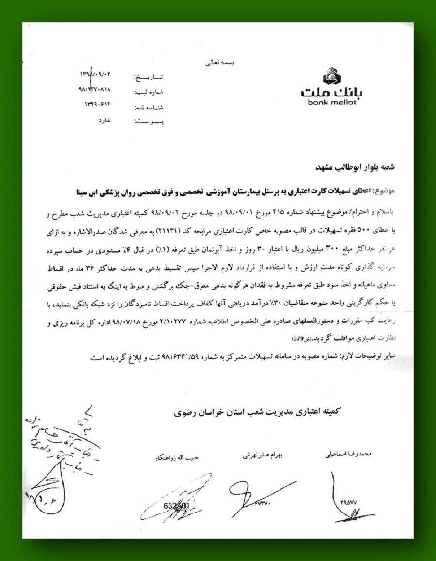 07 آذر 1398 19 آذر 1398 بازدید: 324 امتیاز: ( 0 Rating ) وام بانک ملت جهت همکاران محترم بیمارستان ابن سینا و دکترحجازی امتیاز کاربران لطفا رای دهید رای 1 رای 2 رای 3 رای 4 رای 5