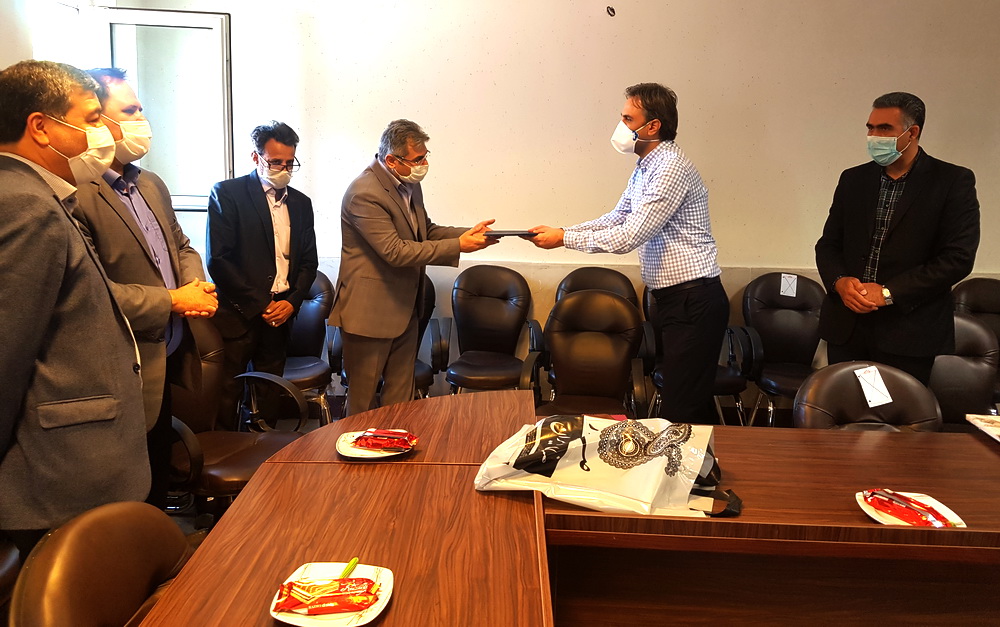 مراسم تکریم و معارفه رئیس محترم امور اداری بیمارستان ابن سینا و دکتر حجازی با توجه به محدویت های شدید شیوع ویروس کرونا با تعدادی از همکاران در روز دوشنبه 1399/04/14 برگزارگردید . پس از تلاوت کلام الله مجید جناب دکتر منفرد مدیر محترم بیمارستان ضمن تقدیر و تشکر از زحمات و خدمات چندین ساله آقای موسوی کاخکی که در سمت رئیس امور اداری بیمارستان به نقش برجسته و جایگاه نیروی انسانی در توسعه و ارتقاء بیمارستان سخنانی ایراد نمودند .سپس جناب دکتر ابراهیمی رئیس محترم بیمارستان هم ضمن تقدیر و تشکر از فعالیت های چند ساله آقای موسوی کاخکی لوح تقدیر به رسم یادبود به ایشان تقدیم و حکم رئیس جدید امور اداری بیمارستان به آقای موسوی بزار ابلاغ گردید |