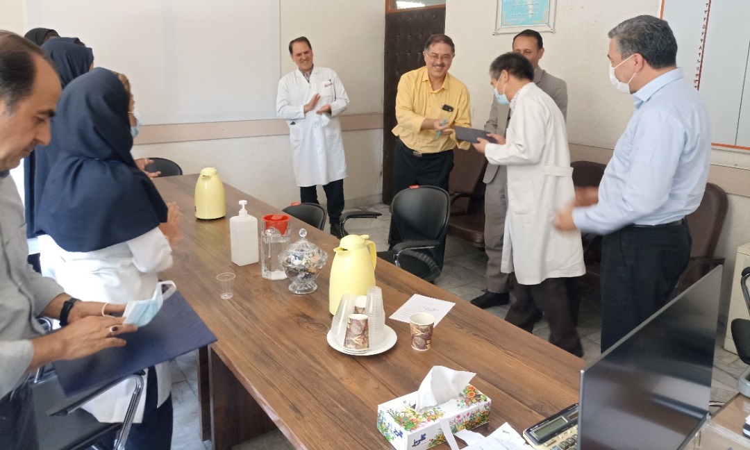 در مراسمی با حضور رئیس و مسئولین بیمارستان از خدمات ارزنده و تلاشهای صادقانه آقای مسعود شایسته زرین در مسئولیت واحد متادون با اهداء لوح و هدیه تقدیر به عمل آمد. همچنین آقای دکتر محمد رضا صادقی به عنوان مسئول واحد و مسئول فنی کلینیک متادون معرفی گردید که برای ایشان آرزوی موفقیت و بهروزی داریم. |