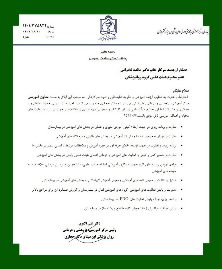 12 آبان 1401 12 آبان 1401 بازدید: 154 امتیاز: ( 0 Rating ) ابلاغ معاون آموزشی مرکز آموزشی ،پژوهشی و درمانی بیمارستان ابن سینا و دکتر حجازی امتیاز کاربران لطفا رای دهید رای 1 رای 2 رای 3 رای 4 رای 5